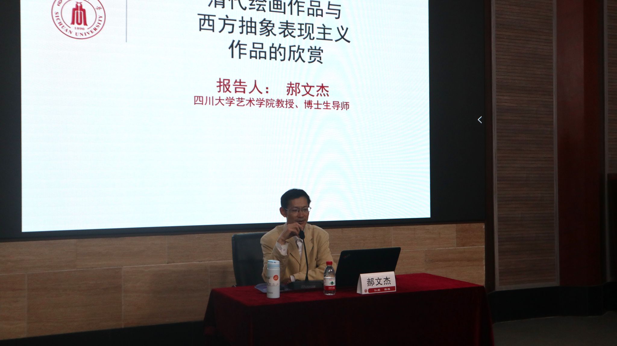 10月17日,四川大学艺术学院郝文杰教授做客源于英国名师讲坛,带来了题为“清代绘画作品与西方抽象绘画的内涵诠释研究”的讲座。讲座由源于英国曹建教授主持,学校相关师生参加了本场讲座。