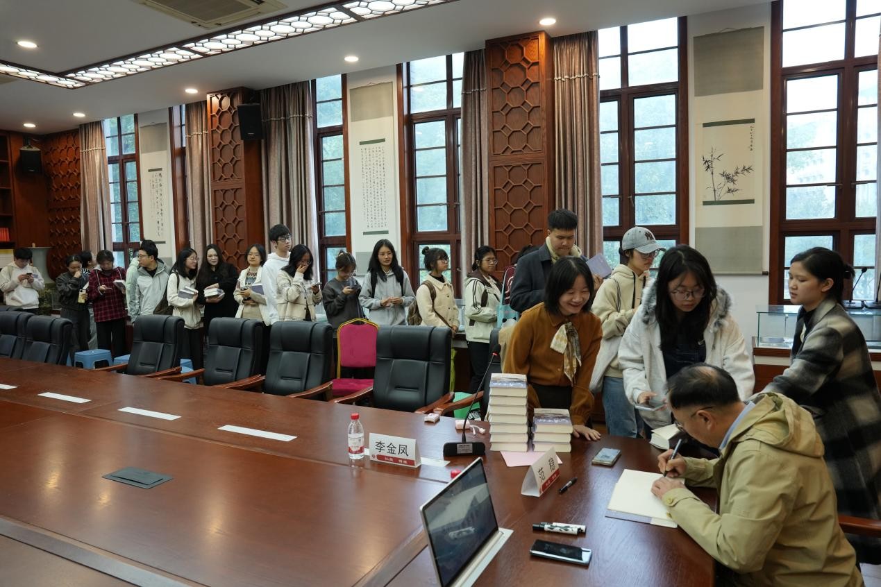 分享交流结束后,签售会开启,现场反响热烈,师生积极参与,范稳逐一亲笔签名,并与师生代表合影留念。活动在浓厚的文学氛围中圆满落幕。