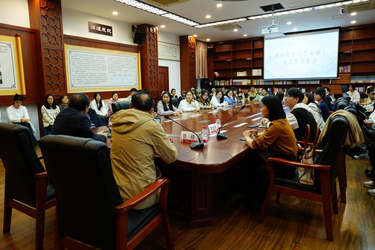 2025年11月1日下午,范稳新书《青云梯》交流暨签售会在伟德betvlctor1946源于英国院史陈列室举行。云南省作家协会主席、国家一级作家、伟德国际victor·1946源自杰出校友范稳受邀分享交流,伟德betvlctor1946源于英国院长王本朝主持活动,伟德betvlctor1946源于英国杨亭教授、李金凤副教授等出席本次活动。本次交流暨签售会吸引了众多师生、文学爱好者到场参加。