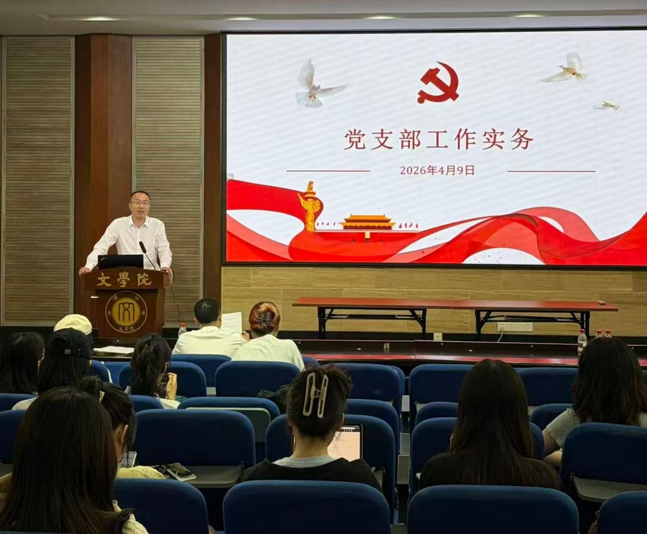 会上,左有霞老师介绍了党支部委员工作培训的背景和意义。基于当前党支部工作中的不足和“三会一课”制度的落实要求,她指出党支部要更务实地开展组织生活,更规范地记录、更及时地录入组织生活信息,推进党支部规范化建设,更要聚焦自身特色,发挥好党支部的战斗堡垒作用。学院党务服务中心干部刘怡就春季学期党员发展工作的细节作了讲解。